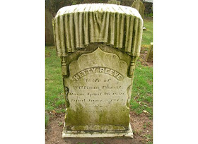 A fancy drape on Hetty Reeve Parsil's gravestone. Parsil Family Cemetery, Short Hills, NJ.